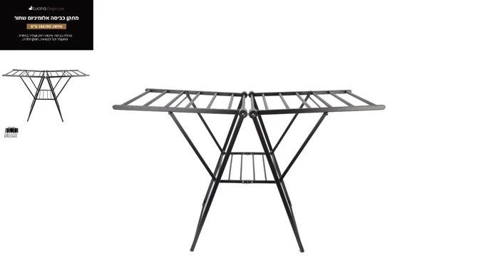 מתקן כביסה אלומיניום 162/60 ס"מ שחור קוצ'ינה - CUCINA