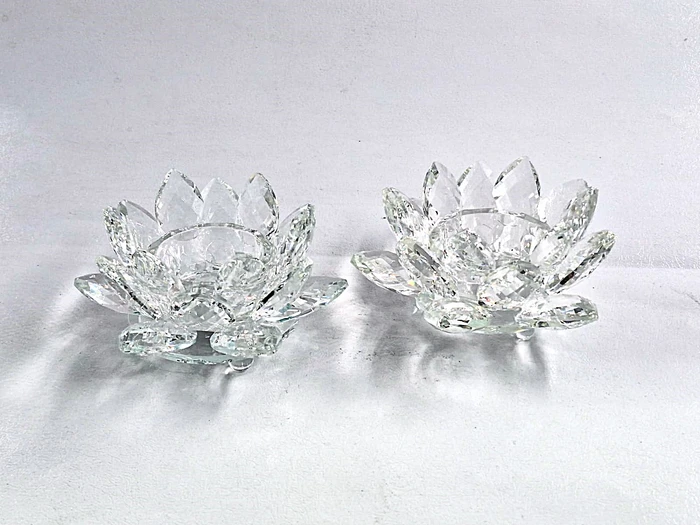זוג פמוט לוטוס קריסטל שקוף